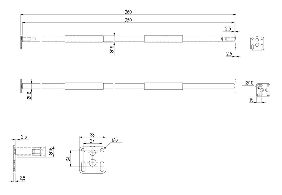 Support - tube avec rouleaux a billes, longueur 1250