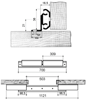 Poignée coulissante 355/070 longueur 700 mm