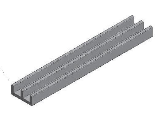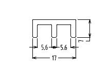 PLASTOVÝ POJEZDOVÝ PROFIL NA SKLO 5mm SPODNÍ DÉLKA: 2 m ROZMĚRY: 17x7mm Profil plastique coulissant pour verre 5mm, base Longueur : 2 m Dimensions : 17x7mm
