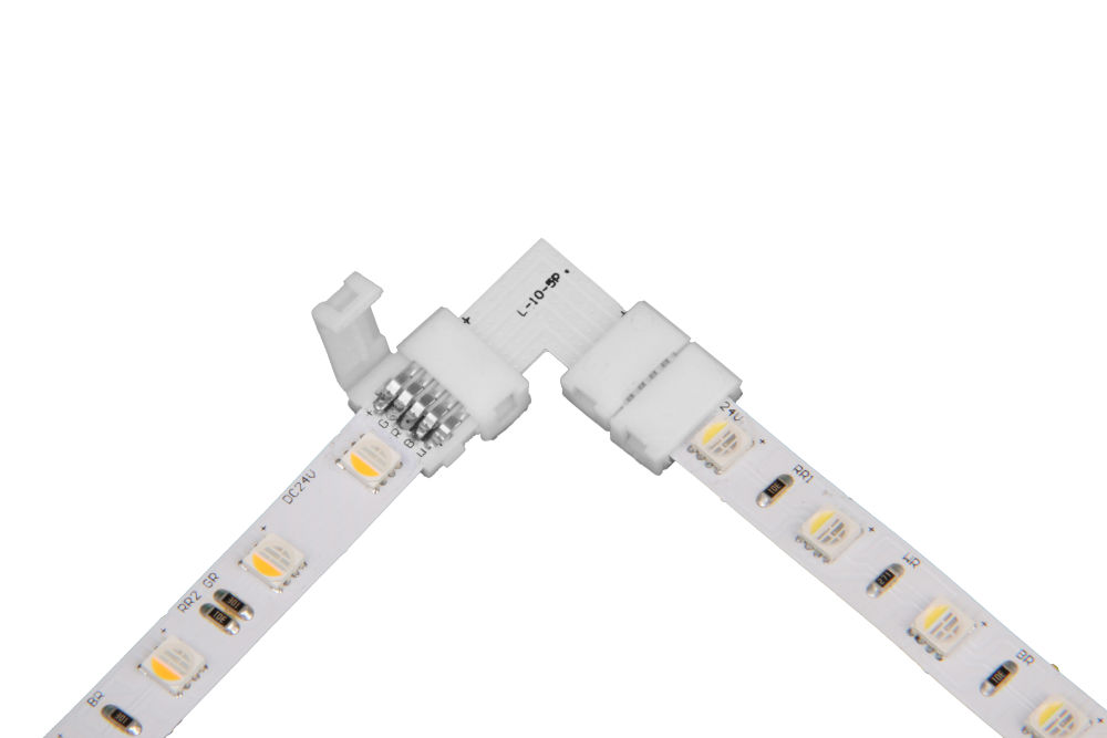 RGBW click raccord L pour ruban 10 mm. Charge maximale de courant 5A.