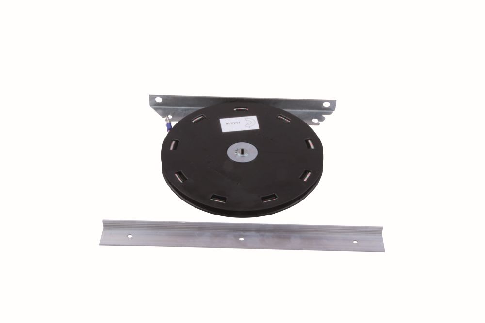 Mécanisme d'enroulement pour l'équilibrage d'un store guidé vers l'arriere. Pour ce mécanisme, il est nécessaire de prolonger le tablier du store sur toute la profondeur de l'armoire.