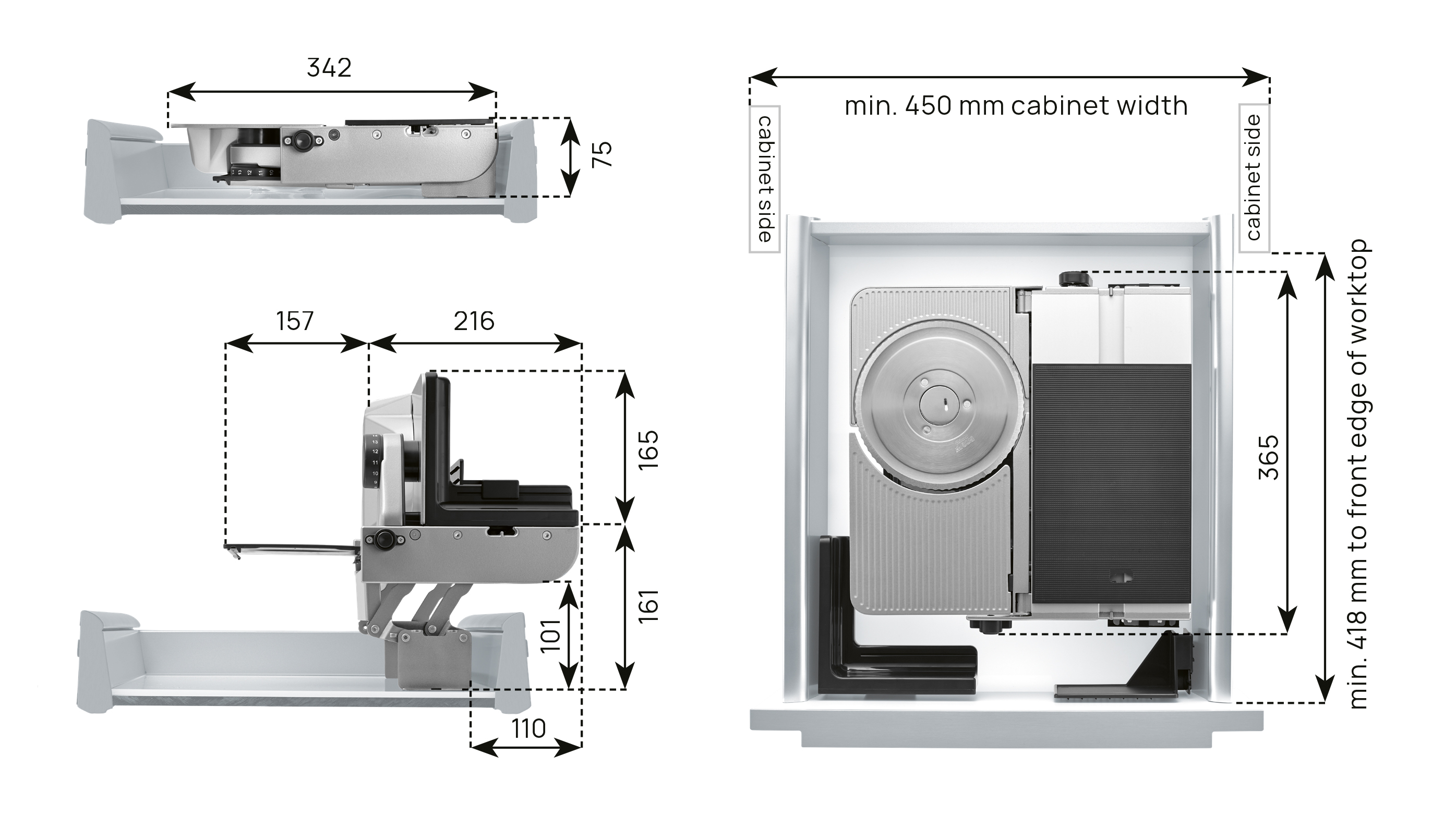 Coupe universel encastrable V : 75 mm L : 342 mm P : 365 mm