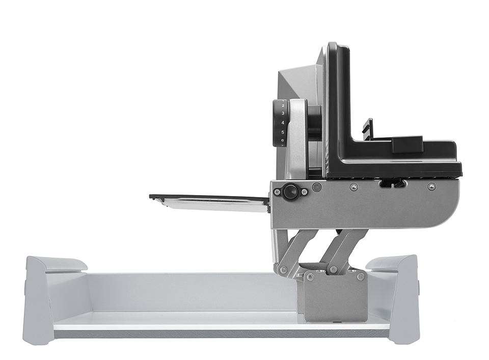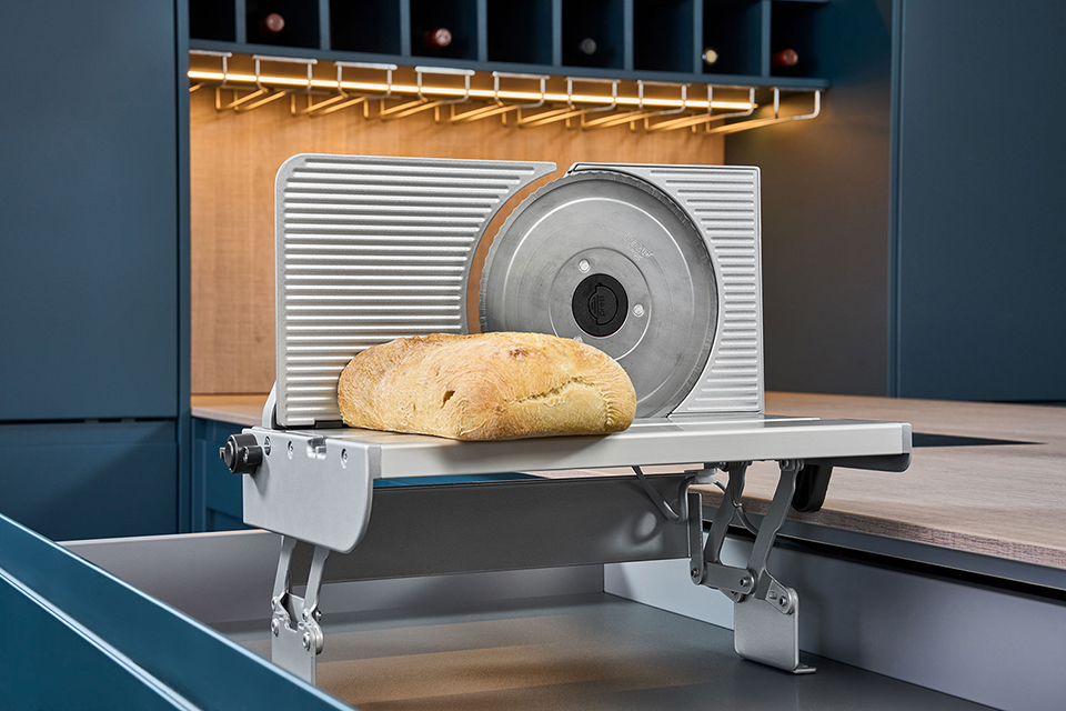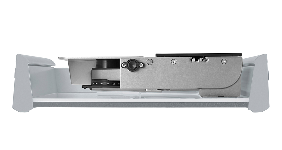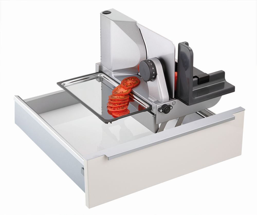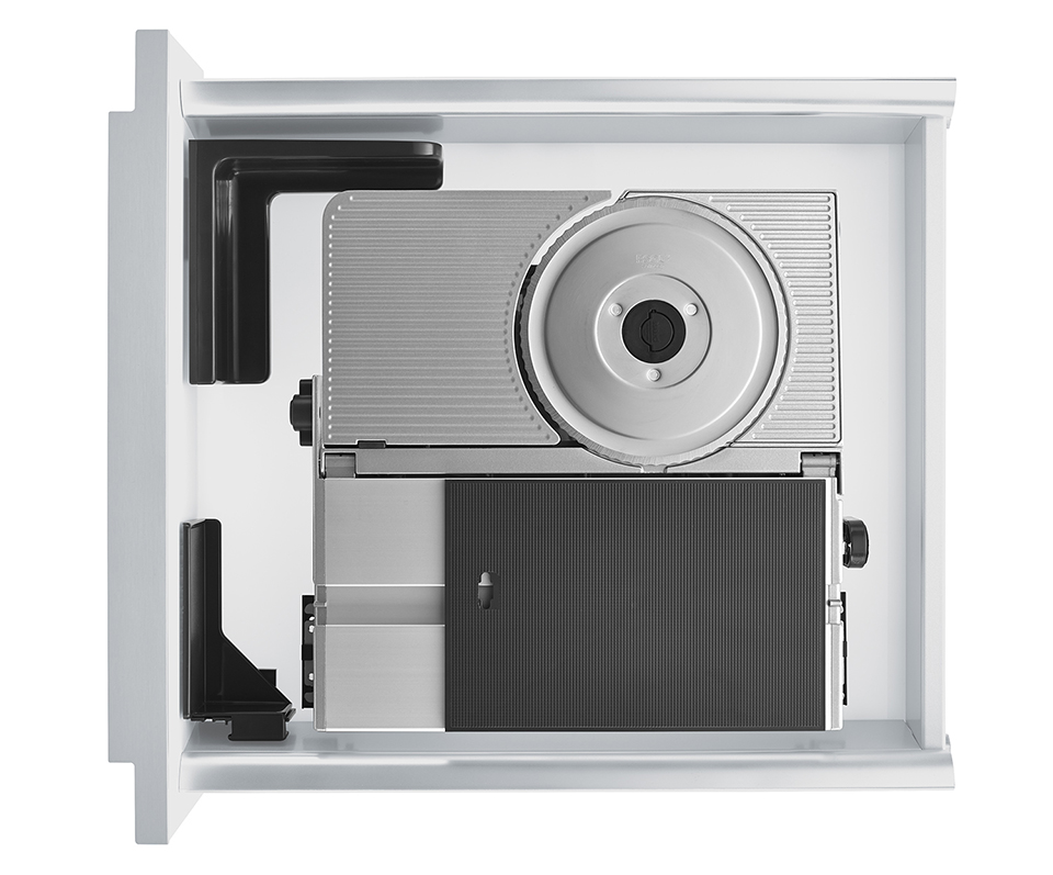 Trancheuse universelle encastrable. Hauteur : 75 mm, largeur : 342 mm, profondeur : 365 mm (fermé).