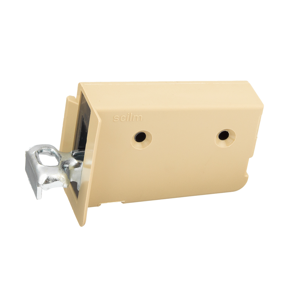 Ferrures suspendues SCILM (Italie) pour caissons suspendus supérieurs. Montage avec vis a bois dans la cotte du caisson. Capacité de charge 70 kg/piece (140 kg/paire). La capacité maximale dépend de la fixation de la quincaillerie dans le caisson et de la fixation du contre-élément/moulure suspendue au mur.