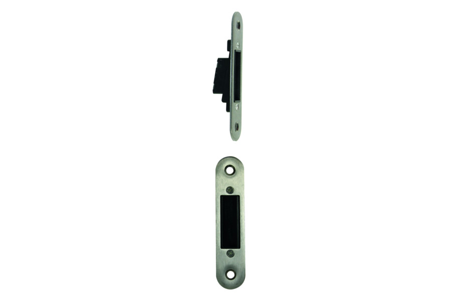 Serrure magnétique avec blocage du pene, avec clé a came, réversible droite/gauche, zinc blanc, livré avec contre-plaqué (largeur 24mm)