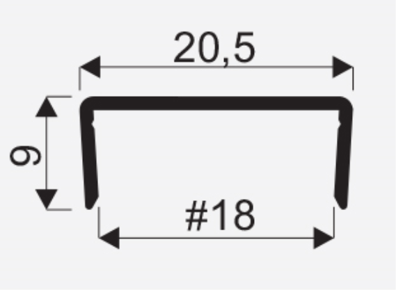 Profil de finition pour matériau de 18mm. Pour une épaisseur de 36mm, il est possible de commander 154168 SEVROLL 02290 profil "U" pour stratifié 36mm argenté 3m.