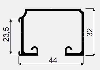 Profil de guidage pour quincaillerie intérieure Gemini. Pour la fixation latérale, il est nécessaire de recouvrir les trous percés avec un chant ABS.