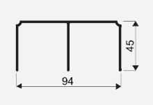 Remplacement pour 98051. Hauteur différente - 45mm au lieu de 37mm. Guidage supérieur pour moulures de poignée Future, Comfort, Minicomfort, Unicomfort, Master. Chariot supérieur correspondant - 98092 (DTD 18mm) ou 98048 (DTD 10mm ou verre). Guidage inférieur - Doubler.