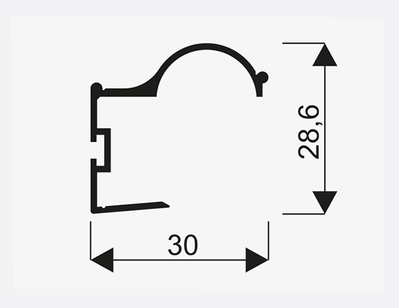 Moulure poignée FACTOR 18mm pour DTDL 18mm. Non adaptée a une utilisation avec stratifié + miroir (verre).