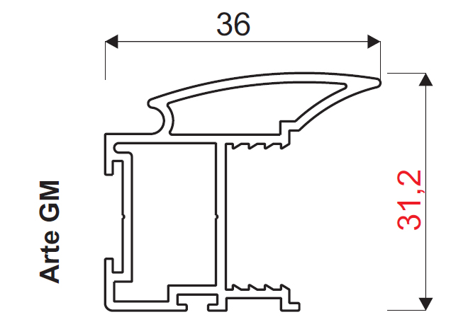 Úchytová lišta Arte GM pro systém Gemini 18 viz. související sortiment. Pro DTD 18mm nebo sklo/zrcadlo 4 - 4,5mm. Povrchová úprava - oliva elox. Materiál - hliník.