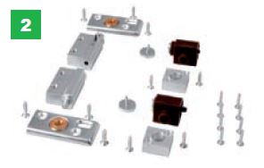 Ensemble de ferrures pour porte battante sur panneau aggloméré 18 mm ou 12 mm + miroir 4 mm. L'ensemble est destiné a un vantail. Nous recommandons d'utiliser la barre de prise Unicomfort.