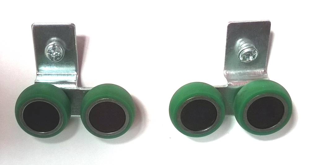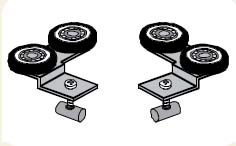 Ensemble de chariots supérieurs asymétriques avec roulement pour porte cadre épaisseur 10mm, pour rails poignée Systeme 10, Fox et Lexus. 1 emballage (blister) contient 2 pcs de chariots.