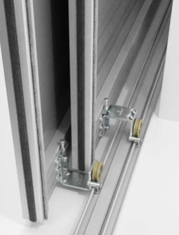 ensemble de ferrures pour deux vantaux, portes intérieures et extérieures. Pour une extension a trois vantaux, il est nécessaire d'utiliser la quincaillerie 343110 SEV-Eden ensemble de ferrures pour portes intérieures. Pour une capacité de charge maximale du vantail de 35 kg.