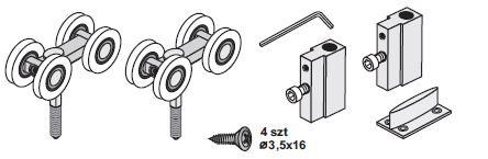 Ensemble comprend : 2x chariot supérieur. Vis. Guide en plastique. Clé Allen. Capacité de charge 50 kg.