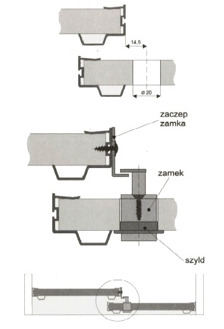 Pour l'installation, les vantaux doivent se chevaucher conformément aux instructions. Les clés ne sont pas identiques. Alternative - 351387 SEVROLL 20396 serrure pour porte coulissante 18 mm (clé identique).