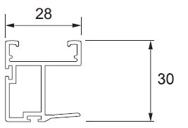 Moulure poignée Elegant de longueur 2,7 mm. Elle peut éventuellement etre complétée esthétiquement par un emboîtement d'ABS de largeur 22 mm, épaisseur max. 1 mm ou 23/0,8. Brosse amortissante emboîtable - 229433. Brosse antipoussiere emboîtable - 95946.