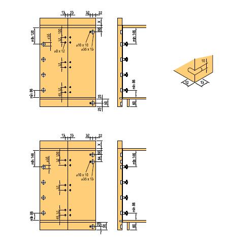 Ensemble de ferrures pour deux portes pliantes sans guide inférieur. Dimension maximale d’un vantail - 300 x 2000 mm. Version droite/gauche.