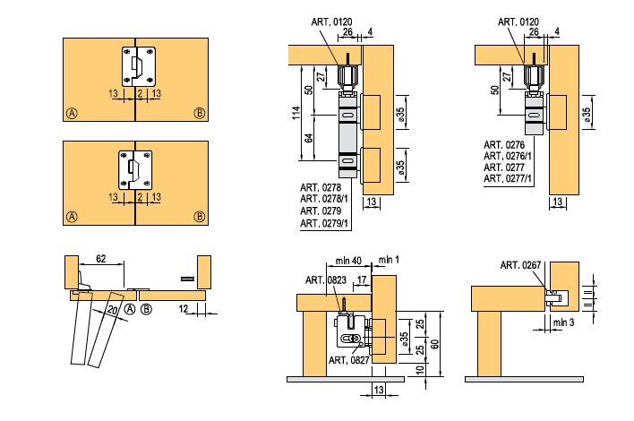Ensemble de ferrures pour deux portes pliantes avec guidage inférieur. Dimensions maximales d’un vantail - 300 x 2000 mm. Version droite/gauche.