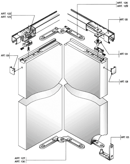 QUINCAILLERIE COMPLETE INCL. 1 m DE MOULURE POUR PORTE INTÉRIEURE PLIANTE CHARGE MAX. : 60 kg ÉPAISSEUR MAX. DE LA PORTE : 30 mm