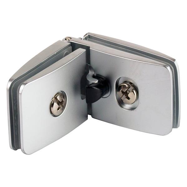 Zawias pour porte en verre percée, le côté peut etre en verre percé ou en bois. Pour épaisseur de verre 4-6,75 mm. Perçage O 10 mm. Finition : aluminium