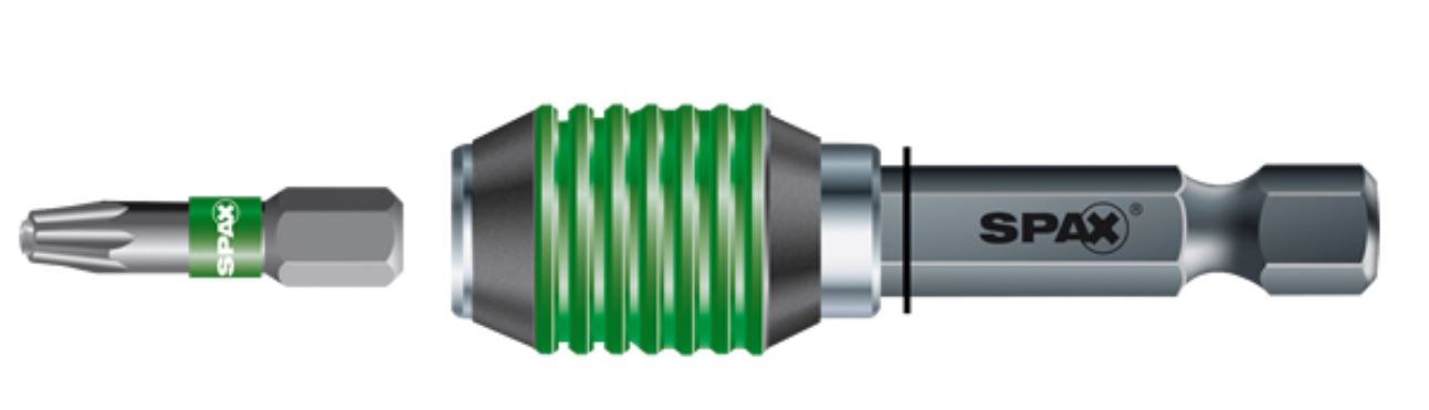 L’ensemble comprend : 1 x porte-embouts a changement rapide, embout 1/4”, longueur 60 mm. 6 x meches SPAX T-STAR plus, T10-T40, longueur 25 mm