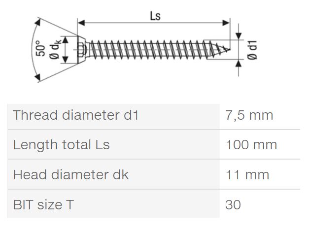 SPAX turbovis 7,5x100 tete fraisée TXS,W,4C MH
