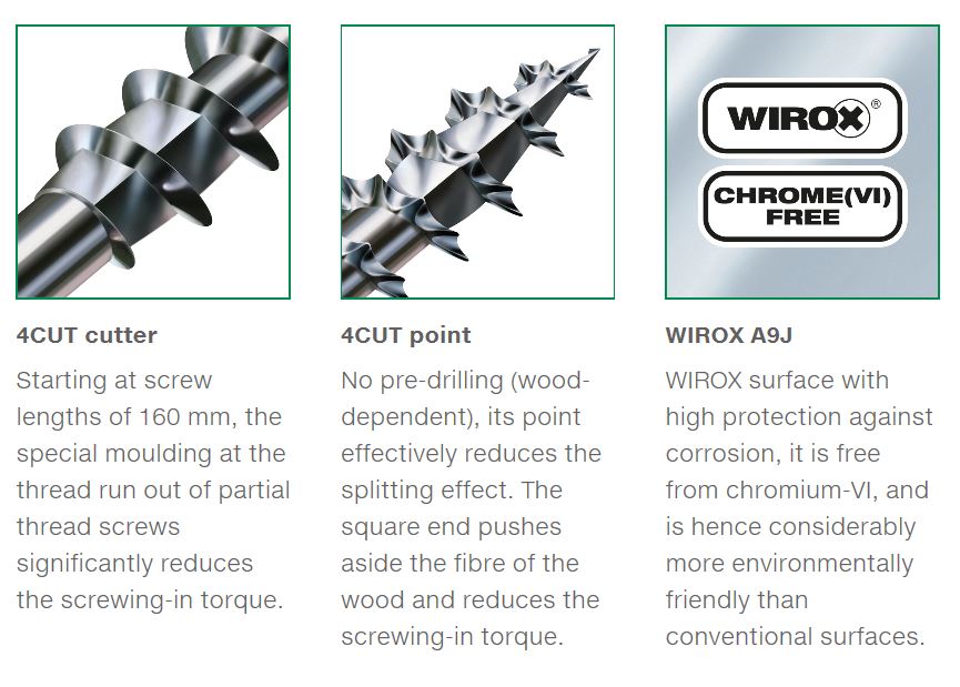 SPAX vis a bois 10x280/80 tete fraisée TXS,W,4C MH, filetage partiel