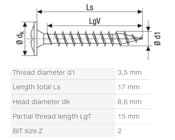 SPAX vis a bois 3,5x17mm tete lenticulaire avec collerette PZ 4C MH