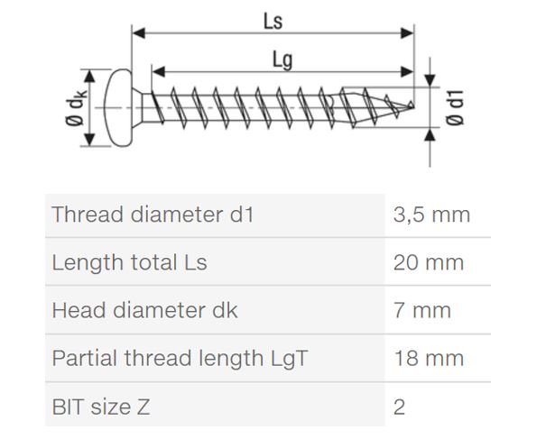 SPAX vis a bois 3,5x20mm tete demi-ronde PZ,W,4C