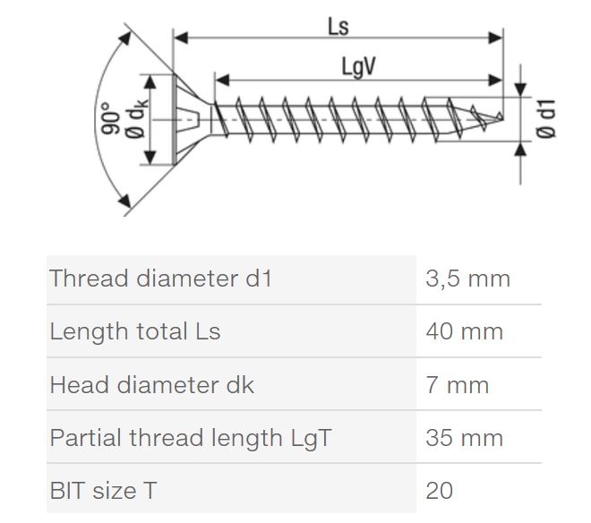 SPAX vis a bois 3,5x40mm tete fraisée TXS,W,4C MH