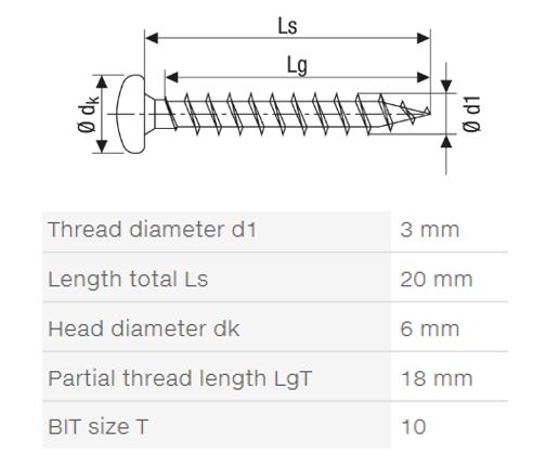 SPAX vis a bois 3x20 tete demi-ronde TXS, W, 4C