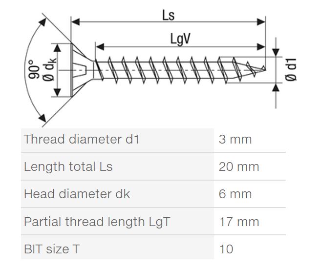 SPAX vis a bois 3x20 tete fraisée TXS, W, 4C MH