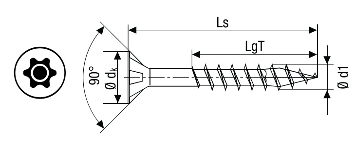 SPAX vis a bois 4,5x80/47 tete fraisée TXS,W,4C MH, filetage partiel