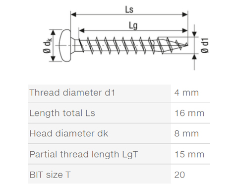 SPAX vis a bois 4x16mm tete demi-ronde TXS W 4C