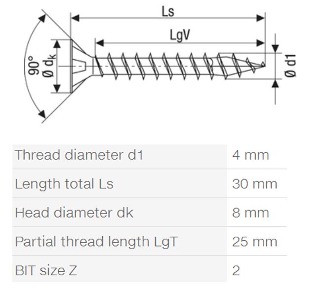 SPAX vis a bois 4x30mm tete fraisée PZ W 4C MH