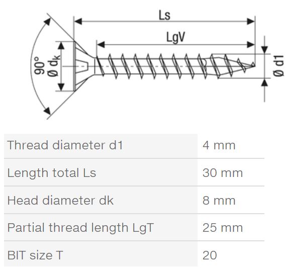 SPAX vis a bois 4x30mm tete fraisée TXS zinc noir