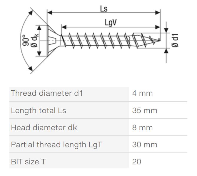 SPAX vis a bois 4x35 tete fraisée TXS,W,4C MH, inox A2
