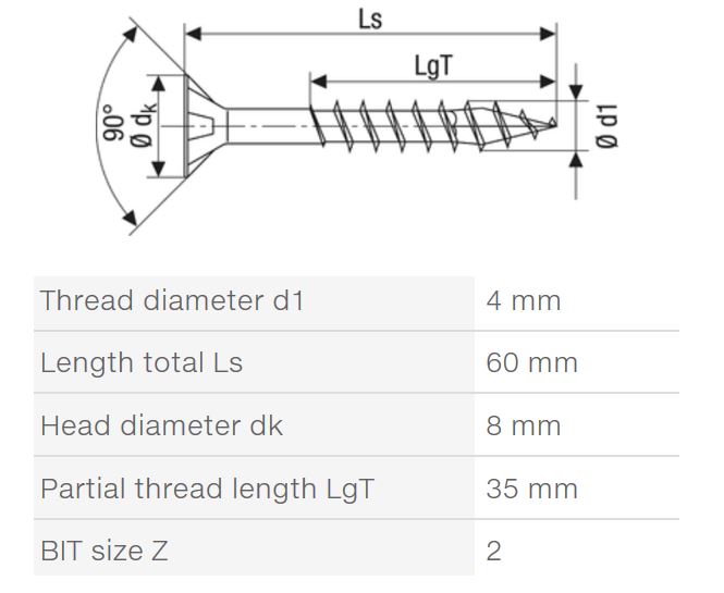 SPAX vis a bois 4x60/35 tete fraisée PZ, W, 4C MH, filetage partiel
