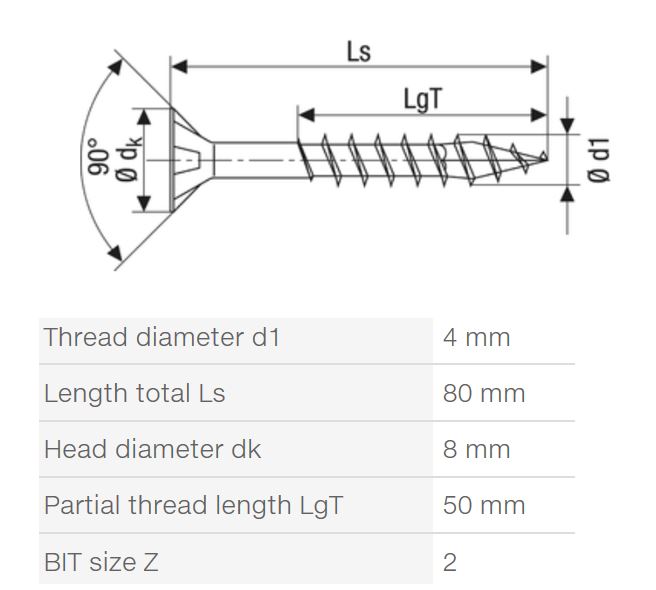 SPAX vis a bois 4x80/50 tete fraisée PZ,W,4C MH, filetage partiel