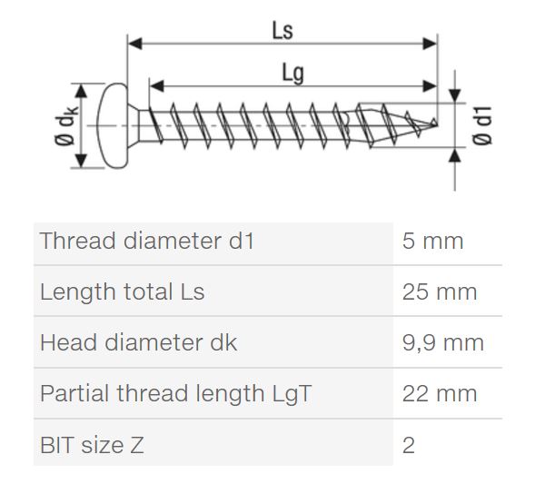 SPAX vis a bois 5x25 tete demi-ronde PZ, W, 4C