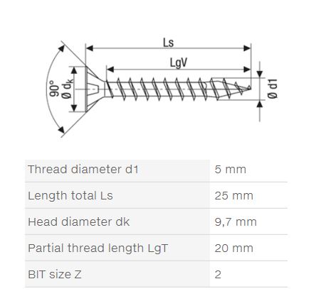 SPAX vis a bois 5x25 tete fraisée PZ,W,4C MH