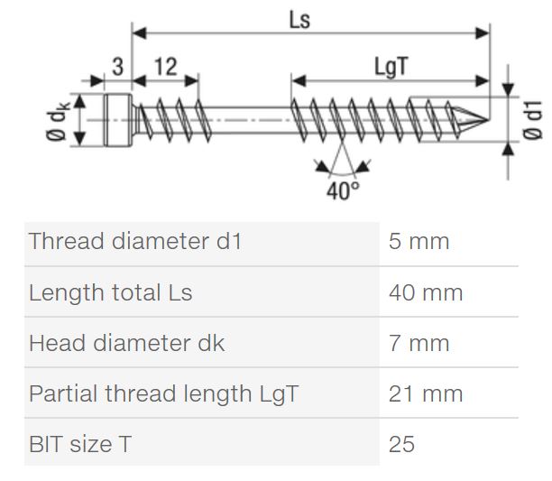 SPAX vis a bois 5x40mm terrasse cylindre TxS inox A2 C argent