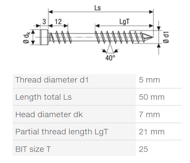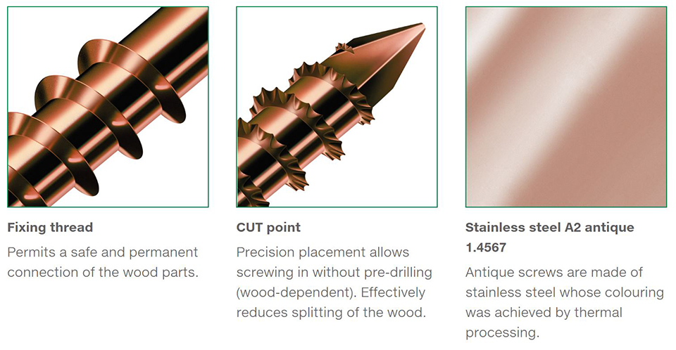 SPAX vis a bois 5x50mm terrasse tete cylindre TXS inox A2 C antique