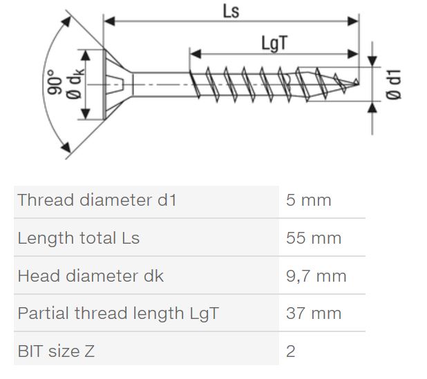 SPAX vis a bois 5x55/37 tete fraisée PZ, W, 4C MH, filetage partiel