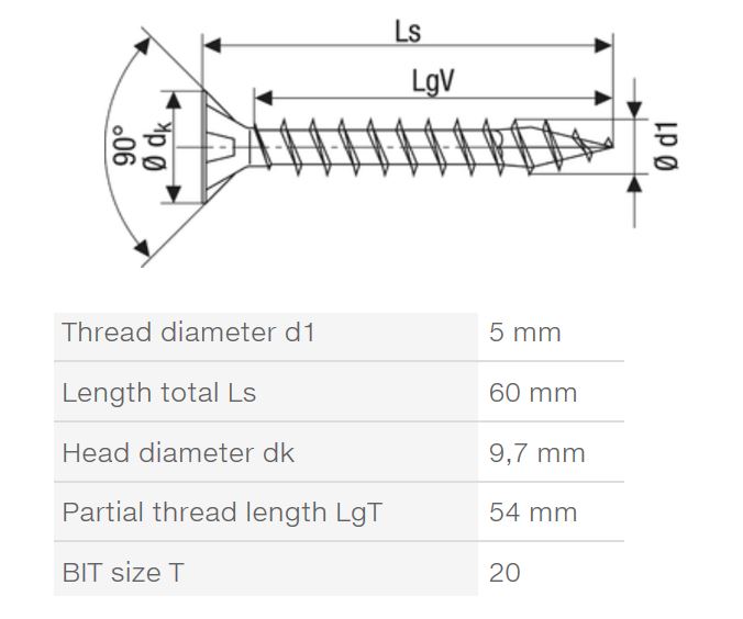 SPAX vis a bois 5x60mm tete fraisée TXS,W,4C MH