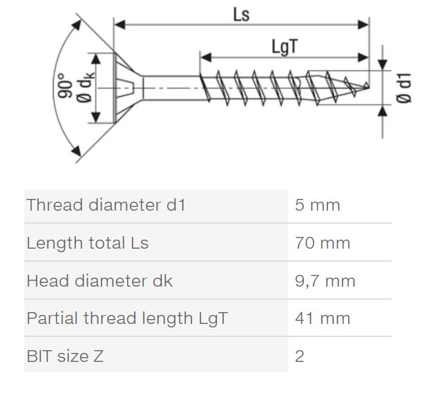 SPAX vis a bois 5x70/41 tete fraisée PZ, W, 4C MH, filetage partiel