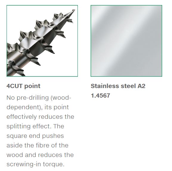 SPAX vis a bois 5x70/41 tete fraisée TXS, W, 4C MH, inox A2, filet partiel