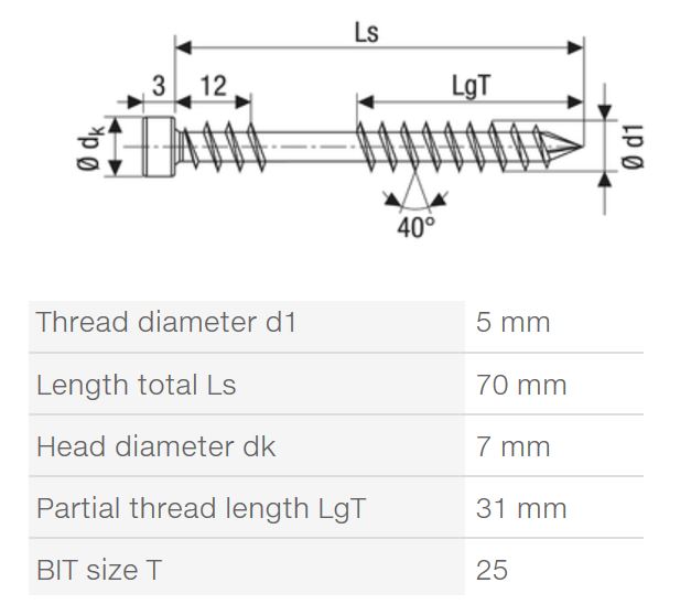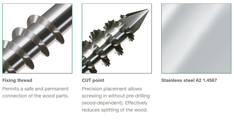 SPAX vis a bois 5x70mm terrasse tete cylindre TXS inox A2 C argenté
