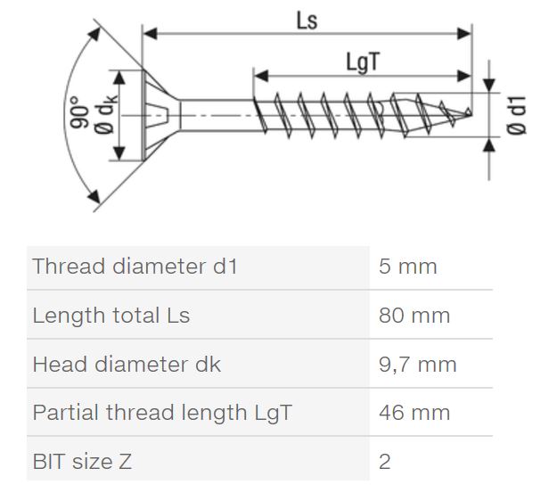 SPAX vis a bois 5x80/46 tete fraisée PZ, W, 4C MH, filetage partiel