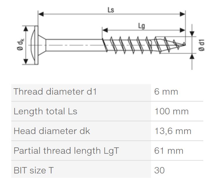 SPAX vis a bois 6x100/61mm tete plate TXS W 4C filetage partiel